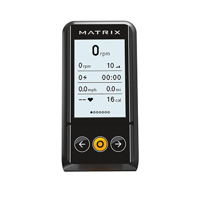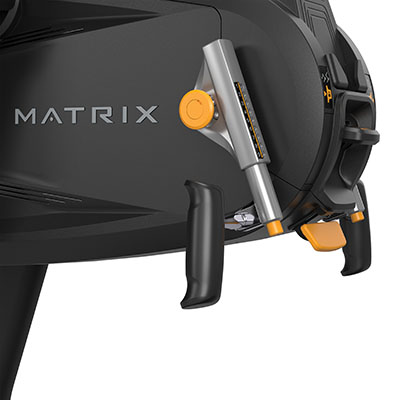 Effortless one-hand seat adjustment fine-tunes positioning to suit users of all sizes. Self-powered system provides cost-savings and freedom of placement within the facility. Self-balancing pedals with heel cups and adjustable straps provide secure, stable foot placement. Transport handle is easily accessible, and top-down adjustment simplifies leveling after installation, maintenance or use. Seat swivels 160 degrees and locks at right, left and center to accommodate a variety of client needs. Hand toggles make adjusting resistance easy and instant WiFi connectivity accommodates optional Matrix Asset Management system. Step-through design offers easy entry and exit Intuitive, bright LED console displays only the feedback essential to therapists and clinicians. Pedal crank arms are independently length adjustable from 3.8 cm-17.8 cm / 1.5"-7" without tools to allow rotational movement with limited knee or hip range of motion. User-facing Ergoform hand grips provide comfortable use. Pedal cranks lock into numbered positions to easily verify crank height and clearly record client progress.