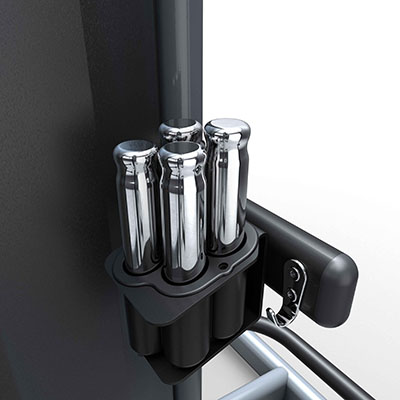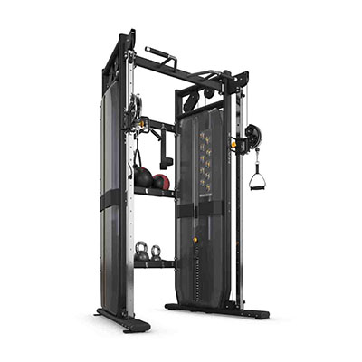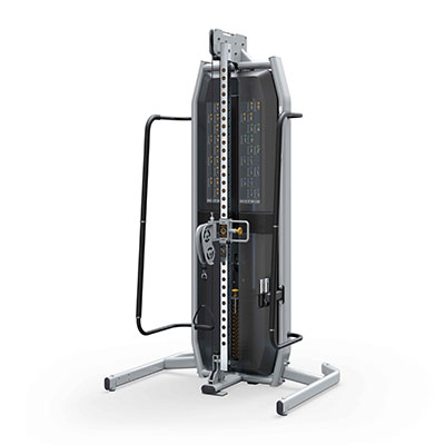1:4 ratio for low starting resistance and high-speed movements. Available with 290lb (MSFT300) or 390lb (MSFT400) stacks. Swivelling accessory station accommodates more training handles and attachments. Multi-grip position pull-up handles with unique rock climbing attachment. Integrated foldaway step for easy access. Includes 10 standard grips and attachments.