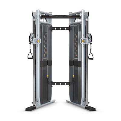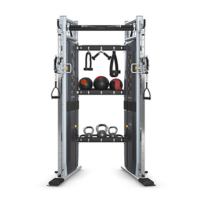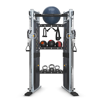The smart design of our functional trainer provides a remarkable range of exercise options in a space-saving footprint. Incremental weight adjustment and a 1:2 pulley ratio make it easy to control exercise intensity and create progressions right for everyone from deconditioned users to elite athletes. Everything about our functional trainer - from the multi-grip pull-up bar to the color-coded adjustment points to the professionally illustrated exercise placards - offers intuitive operation for users and trainers alike. Optional storage makes it easy to organize and stow accessories for instant access, and the completely enclosed design protects moving parts while creating a solid, cohesive aesthetic on your floor. A 76 cm / 30" connection provides ample storage for functional training accessories. Options include VS-VFT60 heavy stack for an additional 27.2 kg / 60 lbs. of resistance per side, VS-FTHP handle package with four training handles (v-bar, curl bar, ropes, ankle strap) and VS-FTIW 2.2-kg / 5-lb.