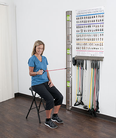 Web-Slide Exercise Rails offer nearly all the benefits of training with weights, without needing actual weights. Instead of weights, the Web-Slide works in conjunction with exercise bands and tubing. Bands and tubing offer progressive resistance, allowing users to work out and advance comfortably at their own pace. Versatile and effective, these three 28" sections of Web-Slide Exercise Rail are a wall-mounted, lightweight exercise station. The key to the Web-Slide's effectiveness are the five anchor points on each rail which are spaced apart at 5" intervals. The versatility comes in how the rails are mounted for use. The three rails can be placed together vertically to create a 7′ station with 15 anchor points. Alternatively, the individual rails can be separated and mounted in different locations and at varying heights to create specialized exercise stations. The included EZ Lock Safety Slides are the conduit that safely secures the exercise tubing and bands to the anchor points on the rails. 10 ExerBand Exercise Tubes with handles and anchor straps are also included. Five of the tubes are 6' Bilateral Tubes featuring one in each resistance level and the other 5 are 3' Unilateral Tubes, also in each resistance level. There's also a Home Ranger Shoulder Pulley, an Extremity Strap which safely and comfortably anchors tubing to the ankle, wrist, arm or thigh. There's also an Exercise Wall Poster which features more than 30 upper and lower-extremity exercises and a 24" 16-position storage rack to hold exercise tubes, bands and accessories. The Web-Slide is ideal for upper-body workouts that can be as strenuous or as easy as the patient prefers. The unit is fantastic for decreasing shoulder pain and increasing shoulder range-of-motion. Because the workouts are height adjustable, the Web-Slide can also be used for lower body workouts targeting the ankles, knees and hips. Simple to install and simple to use, the Web-Slide is a terrific addition to any fitness facility or home gym. Please note, this is 3 (three) 28" stainless steel Web-Slide Exercise Rails for a total of 84". Complete package includes the rails, the 5 Bilateral Tubes (6' each) with Handles, the 5 Unilateral Tubes (3' each) with Handles, the Shoulder Pulley, the Extremity Strap, the poster, the storage rack, mounting hardware and one EZ Lock Safety Slide for each rail. There's also a complete set of assembly instructions. Please note, the rails must be mounted onto wood or metal studs. Changing the anchor point being used changes the difficulty and effectiveness of the exercise being performed. Compatible with exercise band and tubing accessories such as fitness bars and handles. Can be used standing or sitting, allowing users to focus their work on the upper or lower body and advance at a pace comfortable to them. So versatile, the Web-Slide will work with nearly all exercise tubing and bands. Easy to clean, needing just a warm damp cloth and some mild soap.
