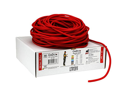 These CanDo Rolls of Exercise Tubing offer clinics tremendous value for patient rehabilitation, fitness, physical therapy and athletic training. Additionally, they are great for stretching, muscle toning, improving balance and conditioning all major muscle groups. The tubing contains natural rubber Latex and features all the functionality, stretchability and benefits that Latex offers. The 100' roll is packaged in a convenient dispenser box. Simply unroll the desired length of exercise tubing needed and cut with scissors. Versatile, CanDo Exercise Tubing is very effective for upper and lower body exercises, most of which are simple, easy to do and can be performed anywhere. Lightweight, compact and portable, the high quality and superior characteristics of this tubing is why it's used in physical therapy and athletic training by clinics, fitness centers and individuals nationwide. This is 100' of the Red (Light) Tubing. Effective when used alone or with handles and anchors. Because this Exercise Tubing is made with natural rubber Latex, it may cause allergic reactions. A well-known staple of most physical therapy offices, clinics and gyms because of their durability and the multiple benefits tubing offers. 100' rolls allow users to cut as little or as much tubing as needed, ensuring a truly customized and personalized workout. For those with Latex sensitivities, there are Latex-free alternative offerings of CanDo Exercise Tubing.