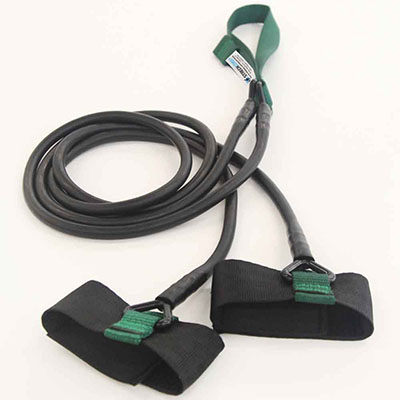 The StrechCordz with Handles is the original dryland training device. Used for curls, tricep extensions, flies and lat pulls to enhance speed, endurance and swim stroke. The StrechCordz with Handles includes two handles connected to two 4ft/1.2m tubes and a combination mounting loop. Sold as a unit only. No removable components or replacement parts. Available in five resistance levels. The Green resistance has 8 - 24 lbs of resistance.