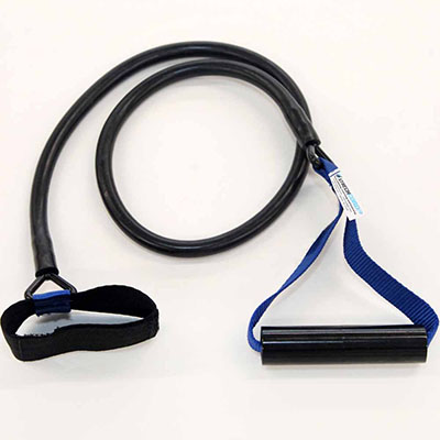The StrechCordz with Handles is the original dryland training device. Used for curls, tricep extensions, flies and lat pulls to enhance speed, endurance and swim stroke. The StrechCordz with Handles includes two handles connected to two 4ft/1.2m tubes and a combination mounting loop. Sold as a unit only. No removable components or replacement parts. Available in five resistance levels. The Blue resistance has 14 - 34 lbs of resistance.