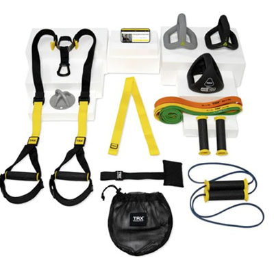 The TRX Pro 4 system includes our most versatile Suspension Trainer and the TRX app, designed to let you fully personalize your workout. It has adjustable and padded foot cradles, upgraded webbing, and custom antimicrobial-treated textured rubber handles. Includes three types of anchoring solutions and a free one-year subscription to the TRX app; Features: Durable, easy to clean antimicrobial rubber handles. A locking, 1,300 lbs. tested carabiner to deter theft. Equalizing and locking loops keep even length. Lightweight Barrel lock adjusters. 3 different anchors for use anywhere. Mesh carrying bag. 1 year limited commercial warranty.