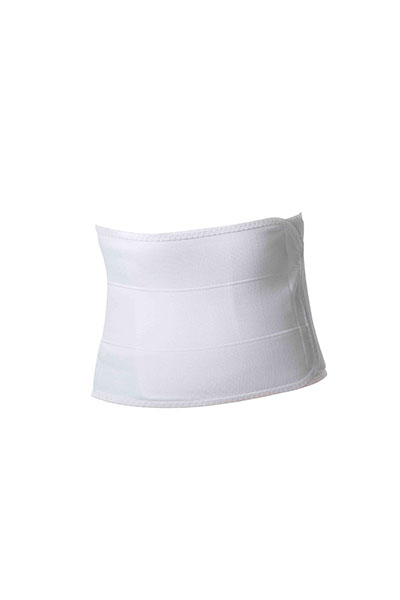 AliMed Three Panel 9"H Abdominal Support braces abdomen to reduce muscle fatigue and strain. Reduces musculoskeletal vibration caused by driving, sports, and physical labor. Evenly distributes compression. Hook-and-loop closure. Hand wash. Air dry. Not made with natural rubber latex. White. Sizing: SM/MD fits waist circumference 30"-45". LG/XL fits waist circumference 46"-62".
