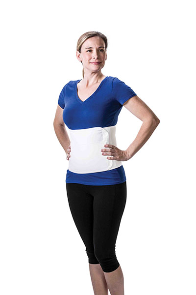 The Abdominal Binder gently supports the belly to promote healing after abdominal injury or surgery; ideal for use after a caesarean section, bariatric surgery, exploratory laparotomy, hysterectomy, tummy tuck, or some spinal surgeries to help support the abdomen and maintain proper intra-abdominal pressure. This low profile support helps supplement the abdominal muscles and ligaments weakened by: injury, surgery, postpartum, or loss of muscle tone. By gently compressing the abdomen, this support helps reduce strain on an incision. It also provides mild back support and can also be used to wrap the abdomen after delivery for tummy reshaping. Made from elastic material that stretches and contracts, this support contours to the natural shape of the body for increased comfort. The plush hook and loop material provides light support for the back while the durable, multitiered elastic material hugs the belly to help prevent the support from slipping, bunching, or rolling during daily activities. Soft elastic CorEdge finish on top and bottom edges offers added comfort and flexibility.