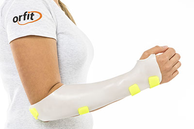 Orfit Natural NS Soft material is anti-bacterial and ideal for hand orthoses. This material is non-stick coated, designed to not accidentally bond. It does allow for temporary bonding during creation, and permanent bonding is possible when the coating is removed and dry heat is applied. When ready for molding, the material turns transparent. This material features a smooth, white finish. The item shown is Orfit Natural NS Soft, 18" x 24" x 3/32", non perforated.